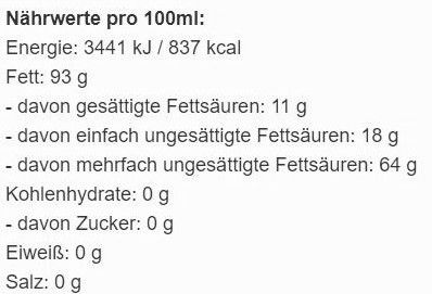 | Usage | Als natives Speiseöl ist Leinöl vielseitig verwendbar, beispielsweise für die Zubereitung von Rohkost und Salaten. Zu warmen Gerichten sollte das Öl erst nach dem Kochen zugegeben werden. Der hohe Gehalt an Linolensäure ist verantwortlich dafür, dass das Öl besonders empfindlich auf zu hohe Erwärmung und auf falsche Lagerung reagiert. |