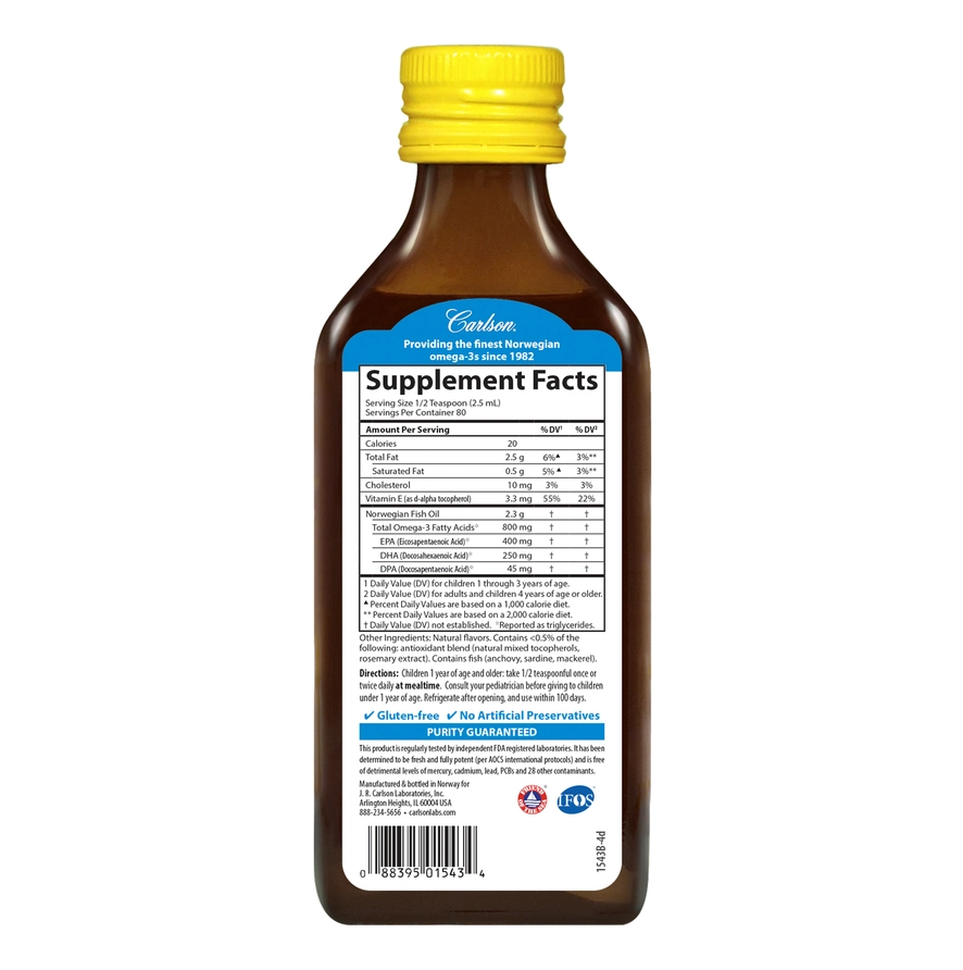 CARLSON LABS FOR KIDS NORWEGIAN FISH OIL, NATURAL Orange FLAVOR 200ML