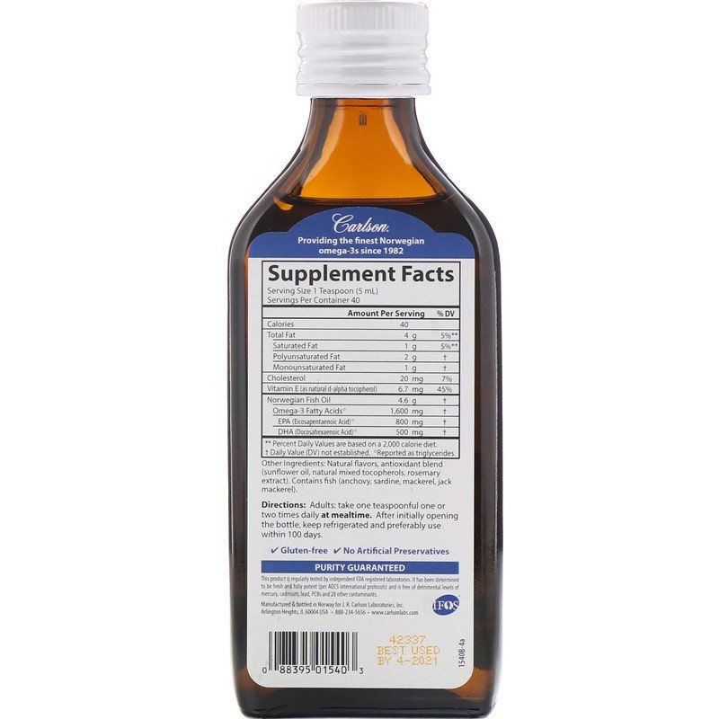 Carlson Labs Norwegian Fish Oil Lemon Flavor 200 ML