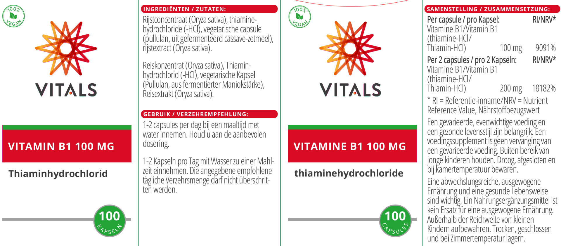 Vitals VITAMIN B1 100 MG 100 CAPSULES
