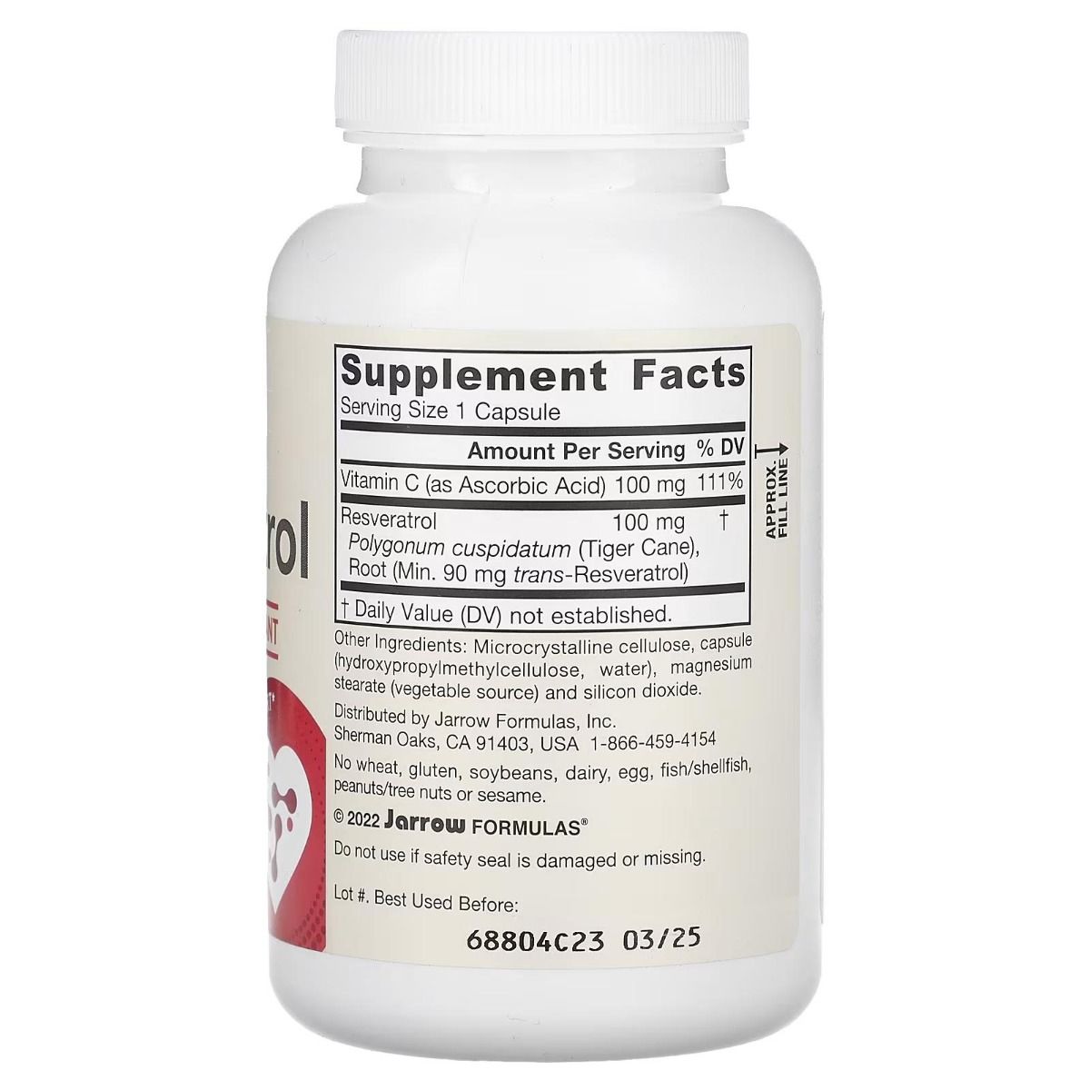 Jarrow Formulas Resveratrol, 100 mg, 120 Veggie Caps