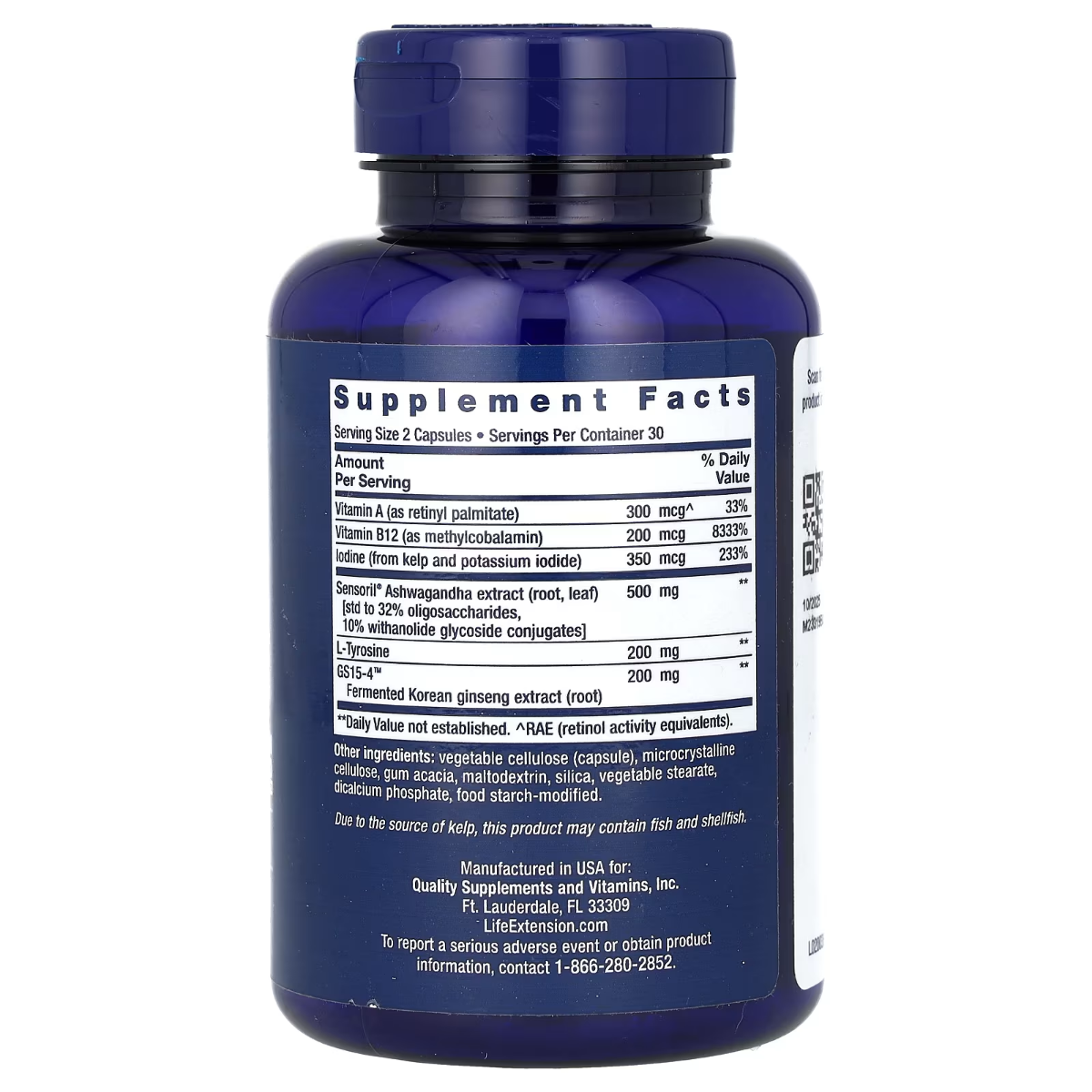 What is Sensoril® Ashwagandha Extract? The Indian herb Ashwagandha (Withania somnifera) inhibits some of the oxidative effects caused by nervous tension. Why add Panax Ginseng? Ginseng is an adaptogenic herb that can promote healthy energy production and support your natural ability to cope with stress. Supports thyroid health Thyroid Support Complex combines Ashwagandha, Iodine, Korean Ginseng and more to promote healthy thyroid hormone production and the conversion of thyroid hormones to their active state. Additionally, this formula contains Vitamin B12 for healthy thyroid activity and Vitamin A to support healthy serum T3 (active thyroid hormone) levels. |