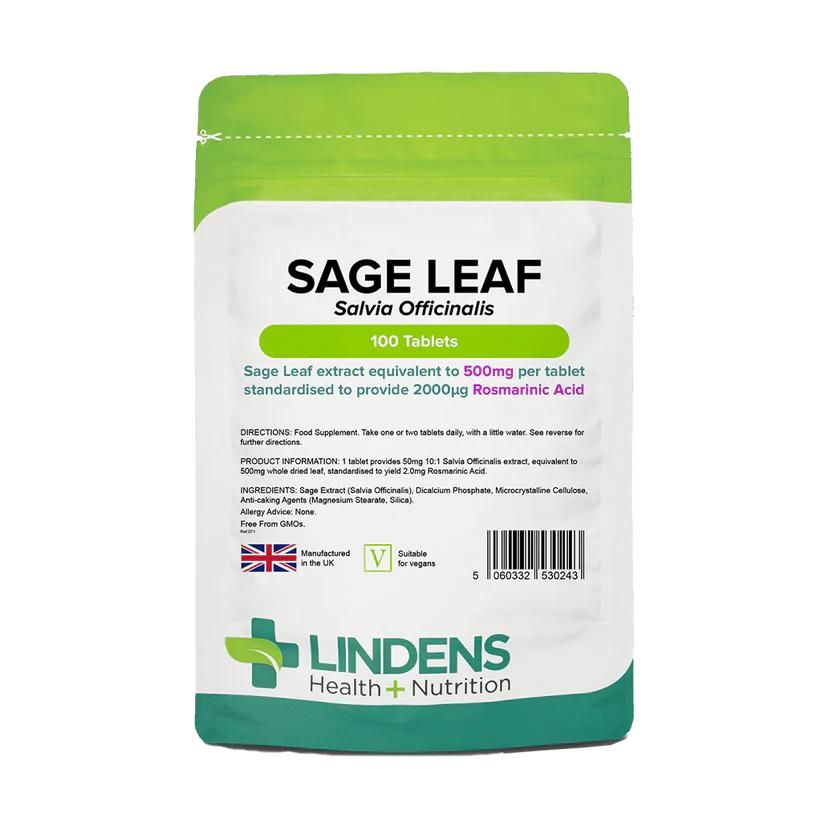 Linden's Sage Leaf 500mg tablets are the perfect addition to your daily intake. With historical use in the West dating back to ancient Greece, sage is not only a common culinary herb but also a modern dietary supplement popular with menopausal women.