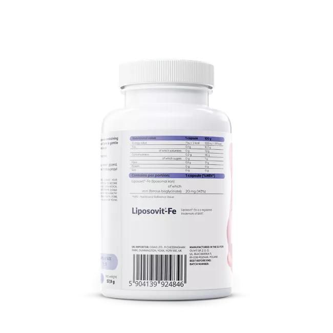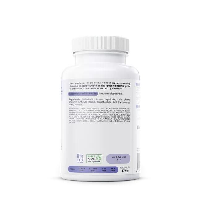 Food supplement in the form of a hard capsule containing liposomal iron (Liposovit®-Fe). The liposomal form is gentle on the stomach and better absorbed by the body. |