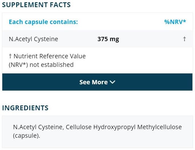| Contents | N.Acetyl Cysteine, Cellulose Hydroxypropyl Methylcellulose (capsule). |