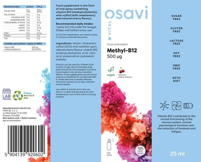 Osavi Methyl-B12 Oral Spray - 500mcg (Cherry) - 25 ml.
