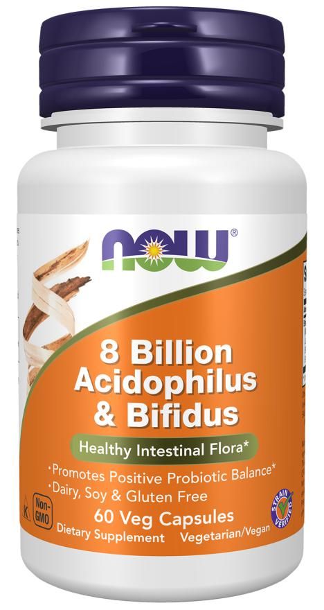 NOW Foods 8 Billion Acidophilus & Bifidus 60 Veg Capsules