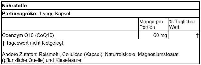 | Description | Das Coenzym Q10 (CoQ10) ist ein vitaminähnlicher Stoff, der eine entscheidende Rolle bei der Energieproduktion in den Zellen spielt. CoQ10 ist überall im Körper zu finden, aber ist im Herzen, in der Leber und in den Nieren in besonders hoher Konzentration vertreten. Man hat herausgefunden, dass seine Herstellung mit zunehmendem Alter abnimmt. CoQ10 wirkt als ein kraftvoller Zerstörer freier Radikale in den Zellmembranen und in den Blutgefäßen. Jahrelange wissenschaftliche Forschung hat gezeigt, dass CoQ10 hilft, das Herz und die Gefäße gesund zu erhalten. |