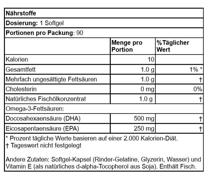 | Description | Now Foods DHA 500 Fischöl Kapseln enthält die doppelte Menge DHA (500 mg pro Kapsel), als Now Foods Produkt mit normaler Stärke (250 mg pro kapsel). Fosschung hat gezeigt, dass der Verzehr von EPA- und DHA-Omega-3-Fettsäuren das Risiko einer Herz-Kreislauf-Erkrankungen verringern kann. Es wird ausgeschlossen ein natürliches Fischölkonzentrat verwendet und nach strengsten Qualitätssicherungsstandarden hergestellt. Das Fischöl wird auf Schadstofffreiheit getestet (z. B. Quecksilber, Schwermetalle, PCB, Dioxin und andere Schadstoffe). Wegen der speziellen coating ist Now Foods DHA 500 magensaftresistent und diejenigen, die bei anderen Fischölen Übelkeit oder Reflux erleben, sollten Now Foods DHA 500 Kapseln leichter vertragen können. |