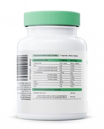 - 1 capsule corresponds to 400 mg of dry Rhodiola rosea root.