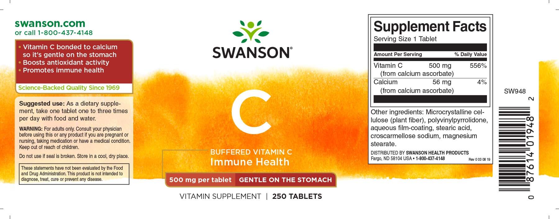 | Description | A stomach-friendly super-C source! Swanson Buffered C contains vitamin C bound to calcium through a special process that neutralizes the acidity of the vitamin, making it more stomach-friendly even at high intakes. |