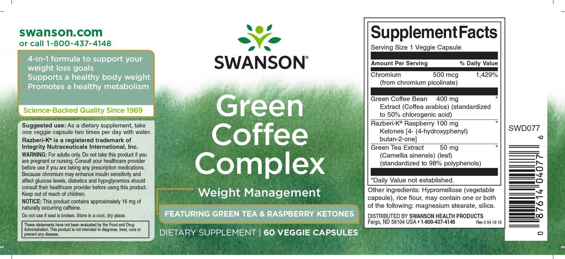 Swanson Green Coffee Complex - Green Tea & Raspberry Ketones 60 Veg Caps