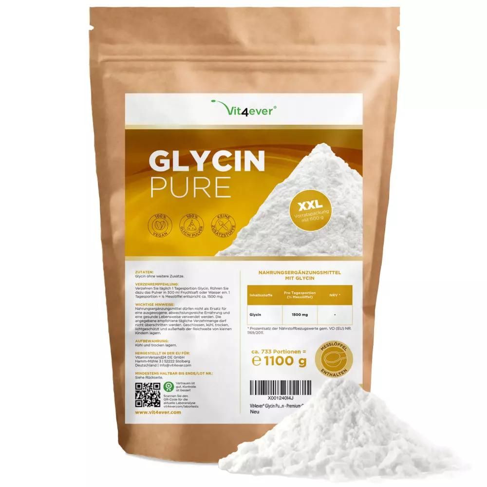 Vit4ever Glycin Pure, reines Pulver - 1100 g (1,1 kg)