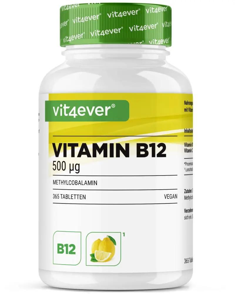 • 365 vitamin B12 tablets for up to 12 months. 1 tablet provides your body with 500 µg (mcg) of well-tolerated methylcobalamin.
