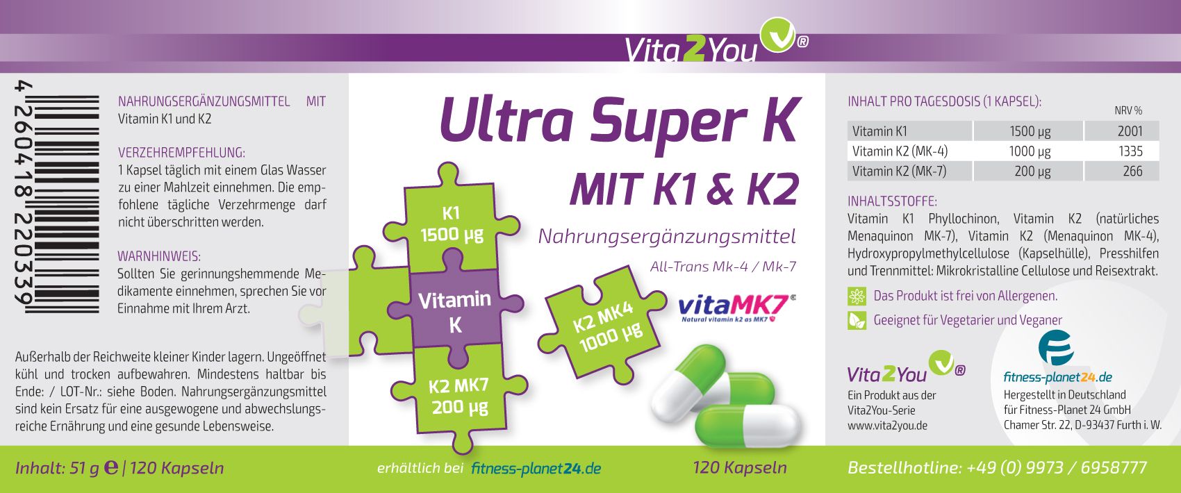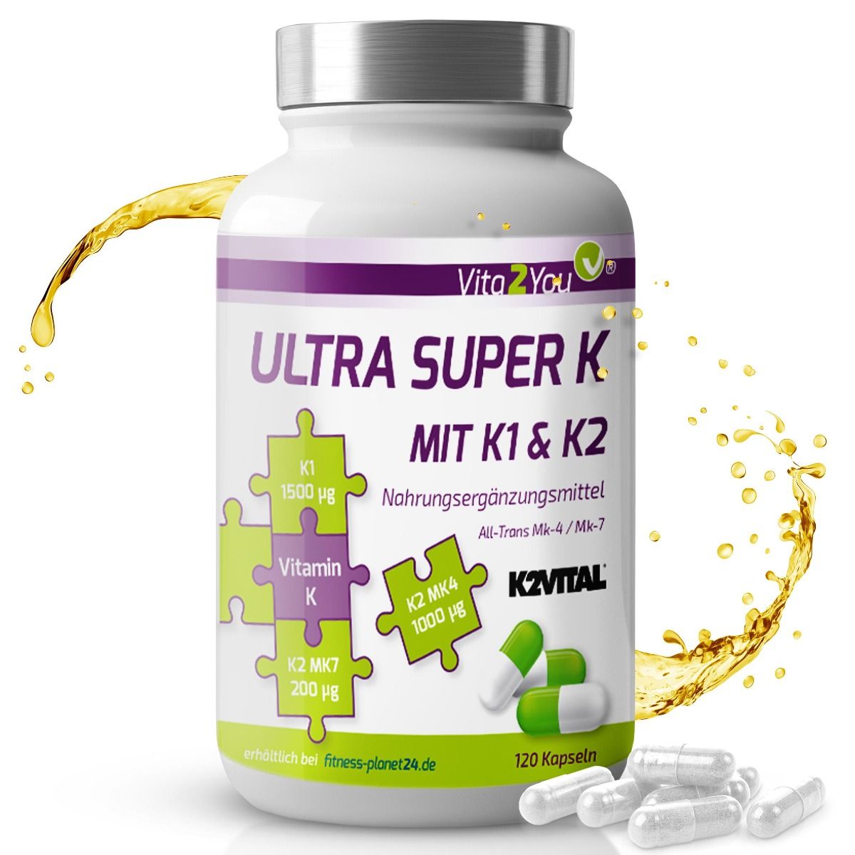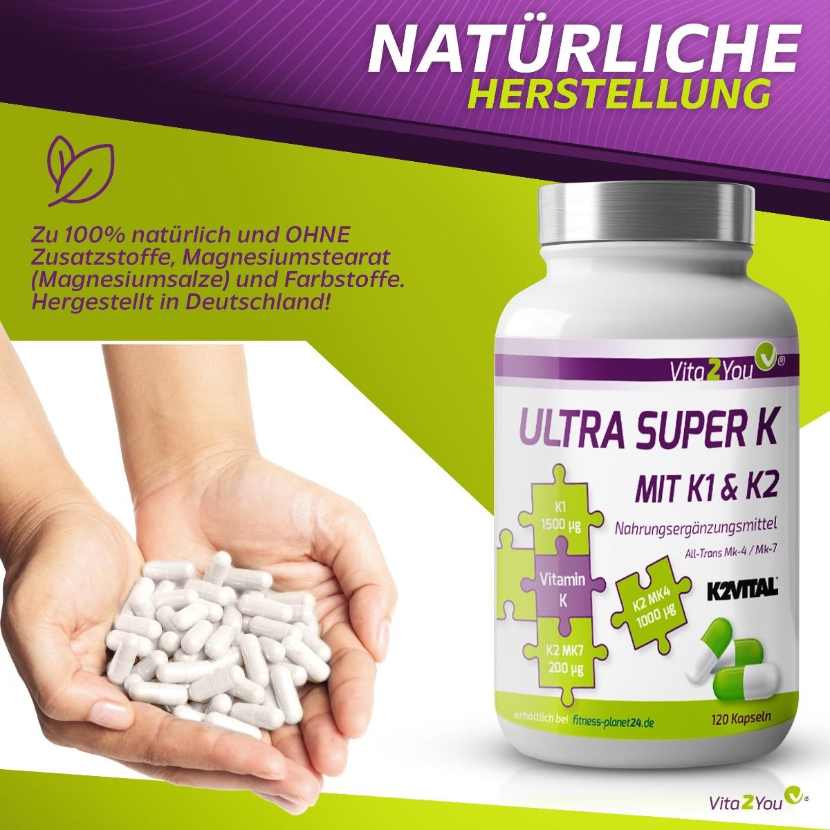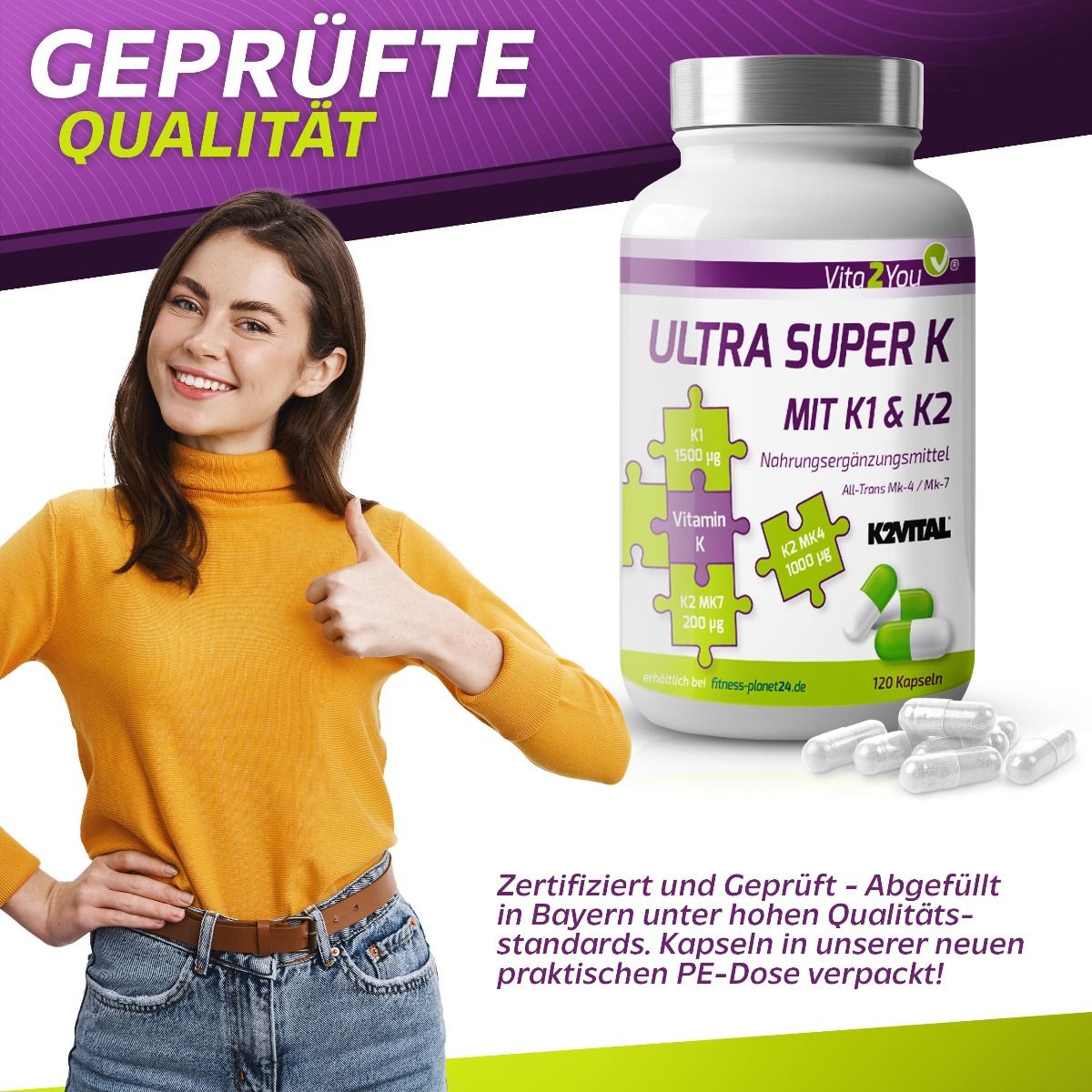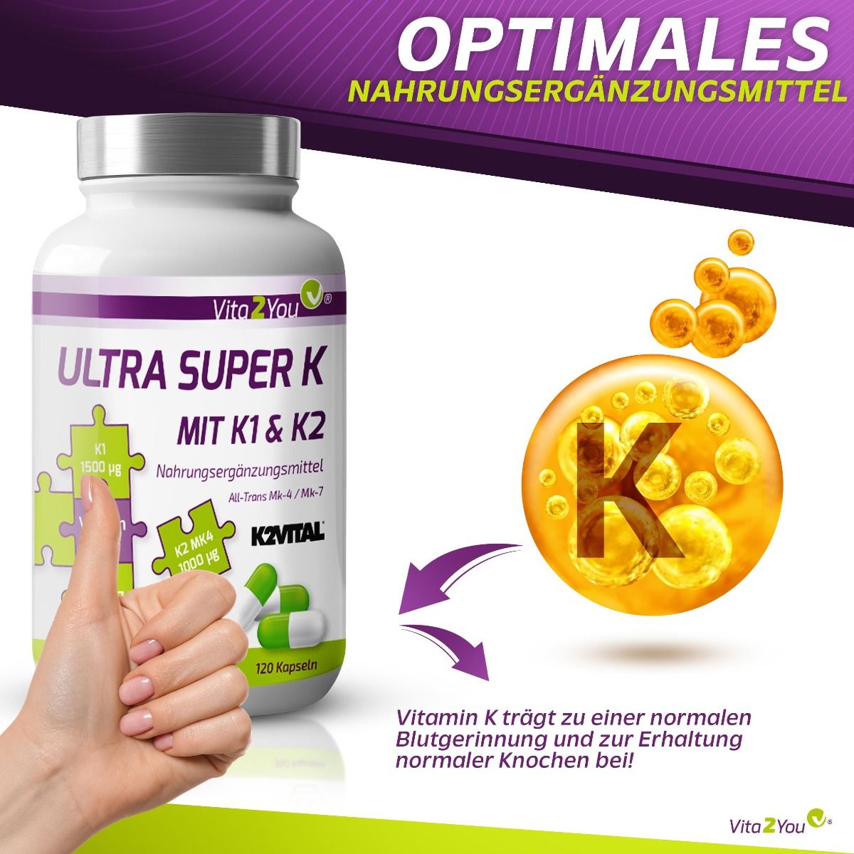 Vita2You Ultra Super K - 120 Kapseln - 2700mcg Vitamin K - Vitamin K2 und K1 - Hochdosiert