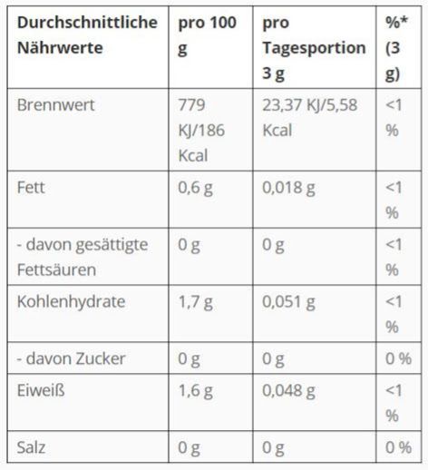 | Guarantee | 100% ohne Zusatzstoffe. Dieses Erzeugnis enthält keine Magnesiumstearat, Anti-Reibungsmitteln, Bindemitteln, Füllstoffe, Hefe, Gluten, Stärke, Lactose, künstliche Süßstoffe, Aromen, Zusatz von Salz, Zusatz von Zucker, Farben oder Konservierungsmitteln. |