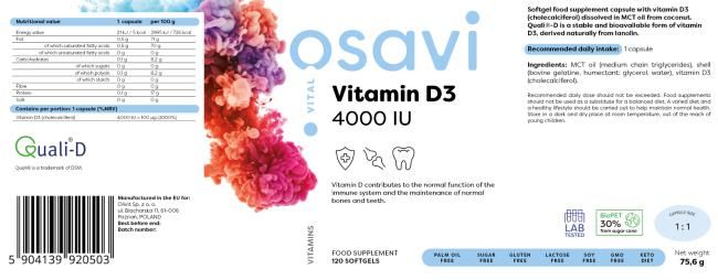 Osavi Vitamin D3 - 4000IU - 120 softgels