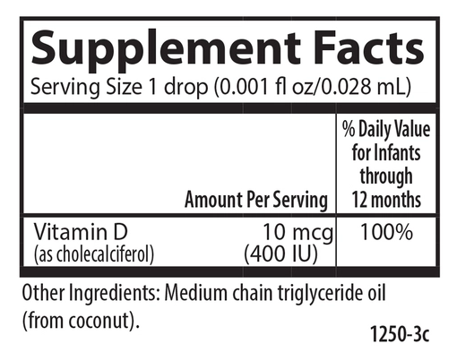 The sunshine vitamin Vitamin D3 plays an important role in overall health, but not everyone gets enough from the sun. Carlson Baby's Super Daily D3 provides vitamin D3 in a safe and convenient way. A single drop of Carlson Baby's Super Daily D3 provides 400 IU (10 mcg) of concentrated liquid vitamin D3, the recommended dose by the American Academy of Pediatrics. |