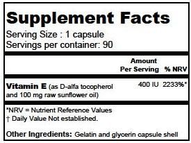 Vitamin E (as D-Alfa tocopherol and 100mg raw sunflower oil) |