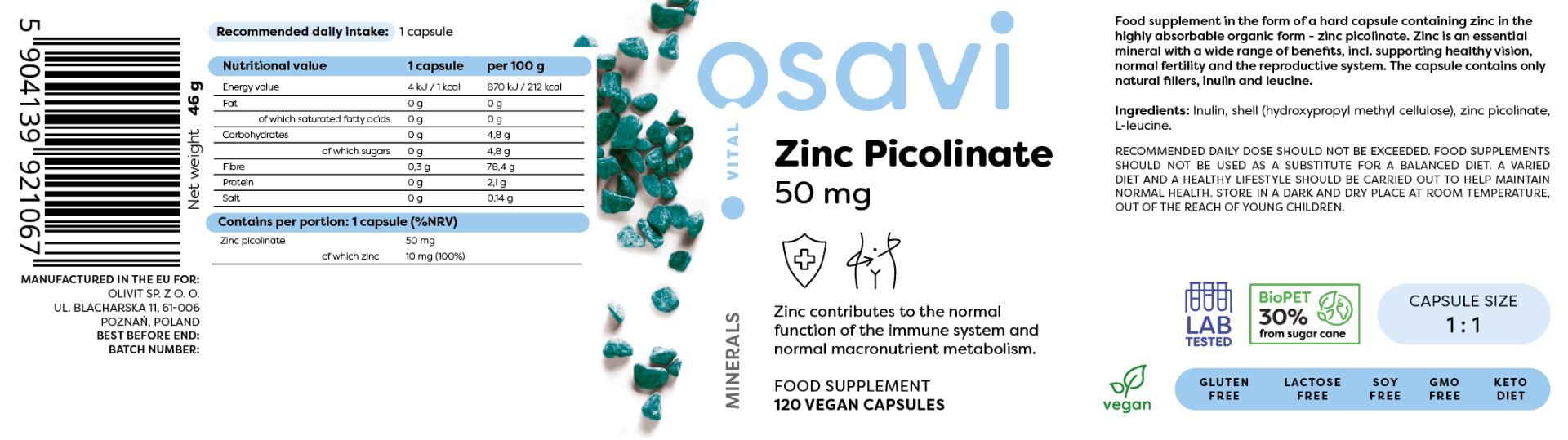 Osavi Zinc Picolinate - 50mg - 120 vegan caps